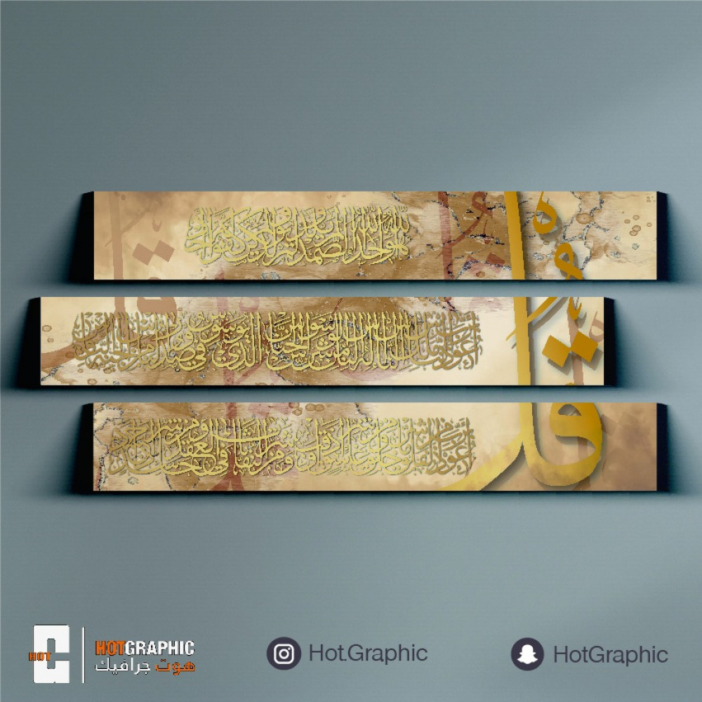 لوحة المعوذات ذهبي عاصفي هي لوحة من آيات القرآنية التي يمكن أن تهديها إلى من سكن بيتًا جديدًا، وهي تصلح لوضعها في الصالات والمجالس والأماكن الفندقية من قاعات وممرات لما بها من ألوان هادئة وراقية تعطي شعورًا بالدفء.