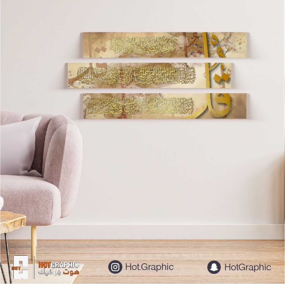- تتميز لوحة المعوذات ذهبي عاصفي آيات القرآنية بتصميم عالي الدقة مما يمنع وجود أي تشويش باللوحة.