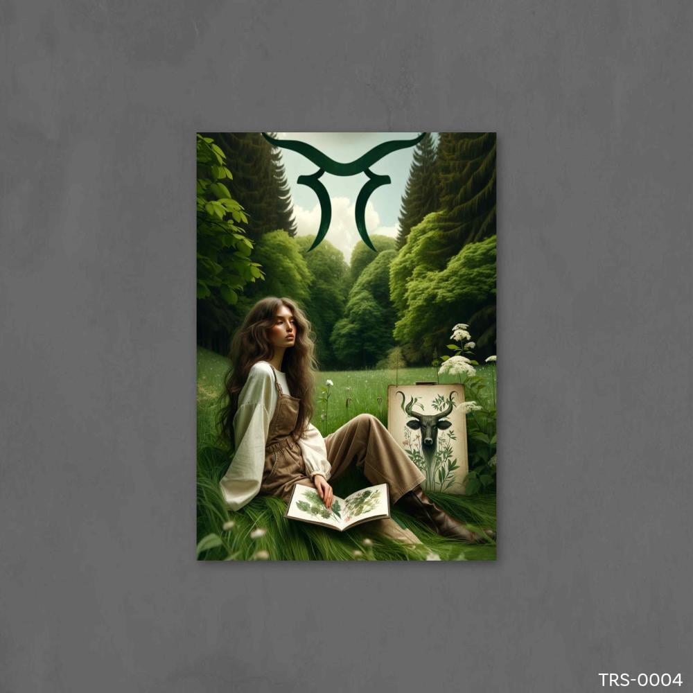 - تتميز اللوحة اسماء برج الثور بتفاصيل دقيقة وواقعية تجعل المشهد ينبض بالحياة، من الأرض العشبية إلى تعابير وجه الفتاة والرسوم في الكتاب.
