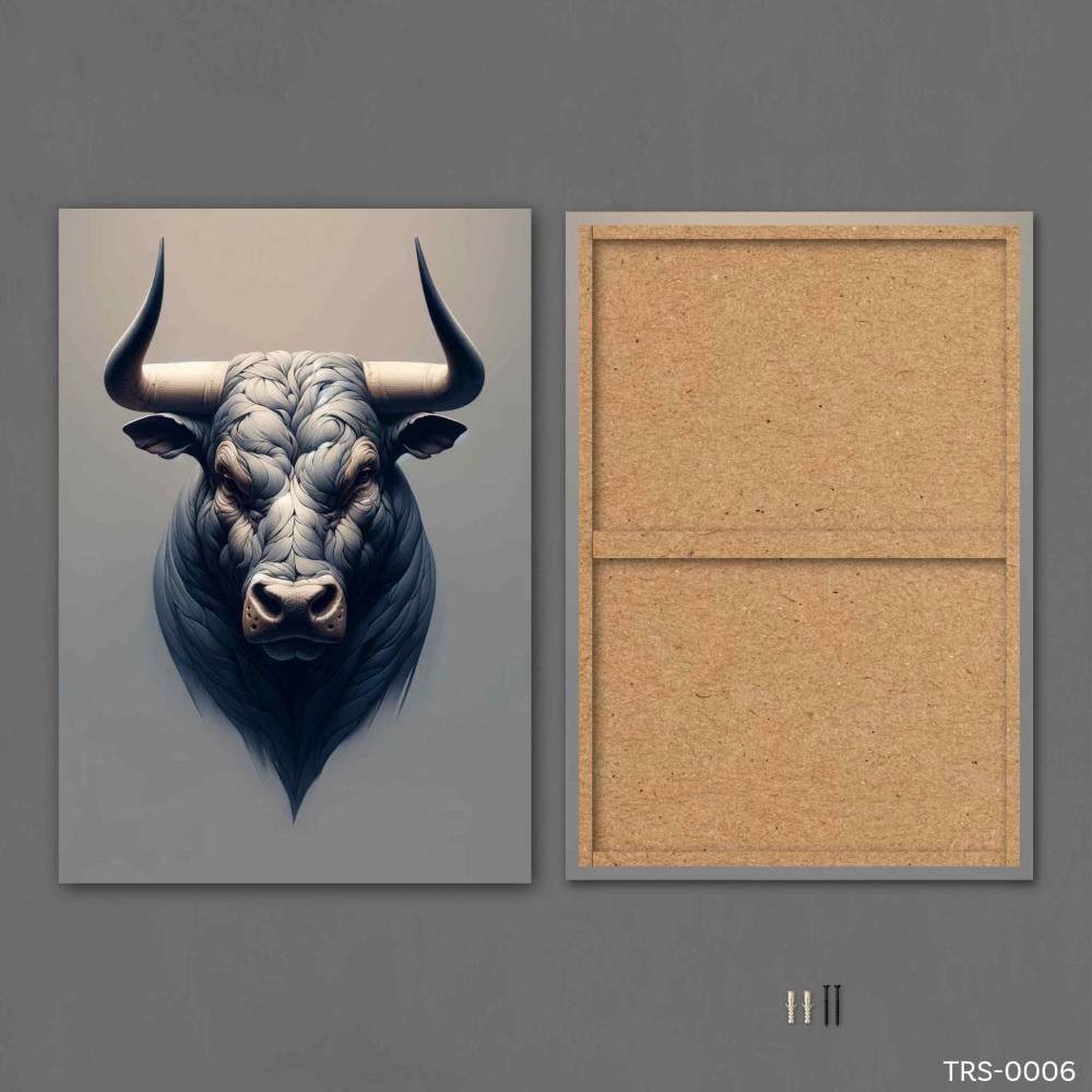 - تظهر اللوحة تفاصيل مدهشة للثور وقرونه البيضاء، مما يعزز من جاذبيتها ويجعلها قطعة مميزة تجذب الأنظار.