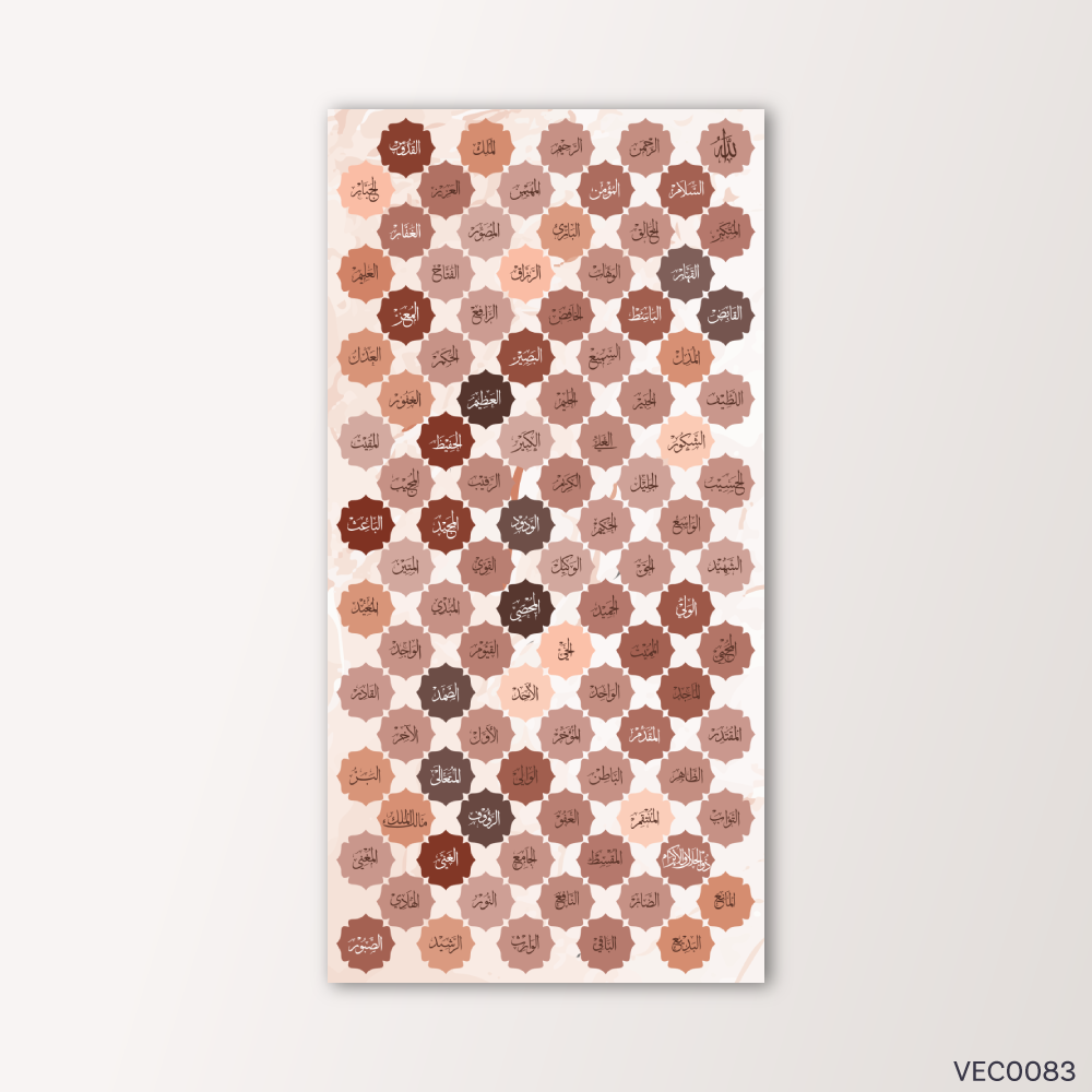 - كل اسم من أسماء الله الحسنى موضوع في شكل هندسي فني رائع، مما يجعل اللوحة قطع فنية مميزة تضيف لمسة جمالية على أي مساحة.
