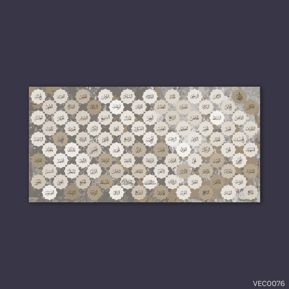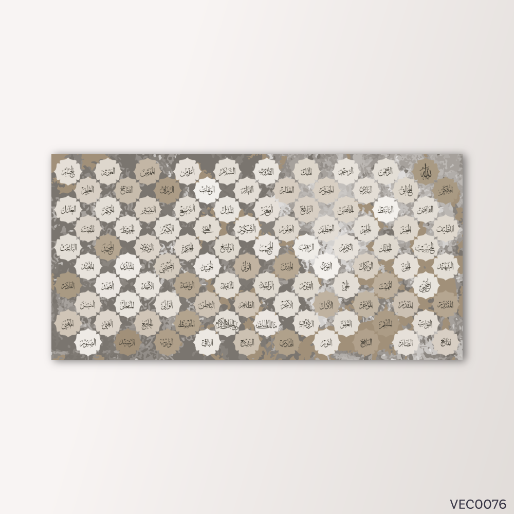 - رمزية السلام الداخلي: الألوان الهادئة مثل البني المعتق، إضافة إلى تناغم الأسماء، تساعد في خلق جو هادئ يعزز من السلام الداخلي والروحانية في المكان. هذه اللوحة تعتبر مصدرًا للسكينة والطمأنينة، مما يجعلها مثالية للمنازل أو الأماكن التي تحتاج إلى جو من الاسترخاء.