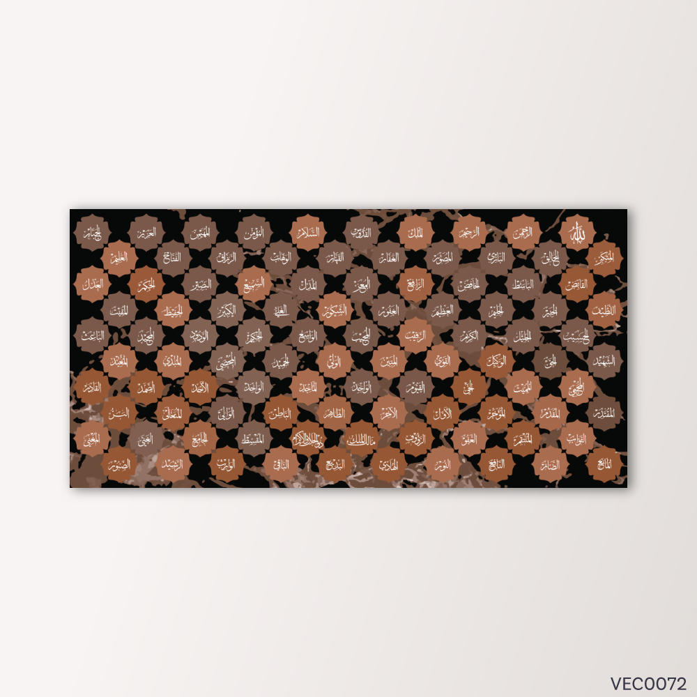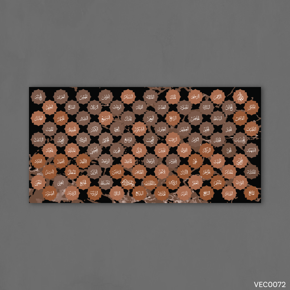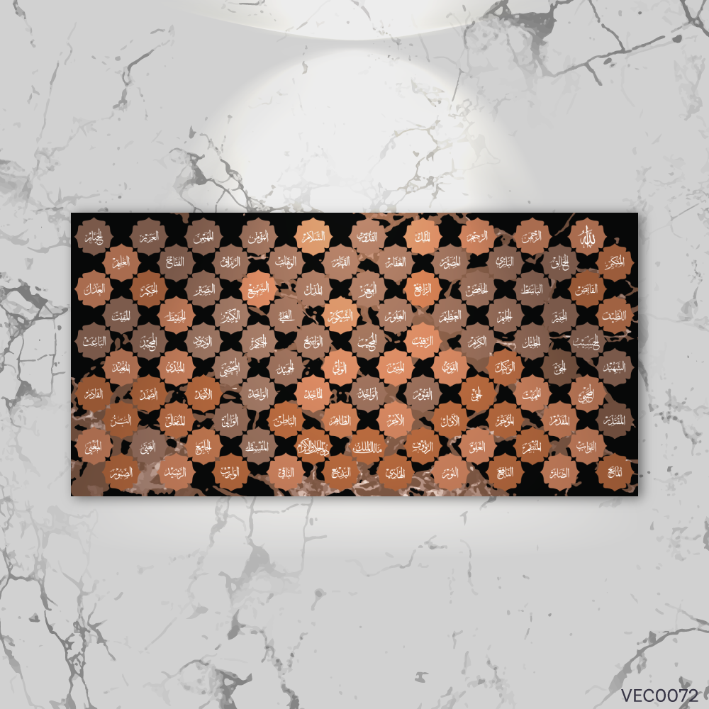 - تأثير بصري قوي: بفضل الجمع بين اللونين البني والأسود، تخلق اللوحة تأثيرًا بصريًا قويًا يعزز من جاذبيتها. الألوان الداكنة تمنحها مظهرًا أنيقًا وفخمًا، بينما الأسماء المضيئة تضيف لمسة من الإشراق والجمال الروحي.