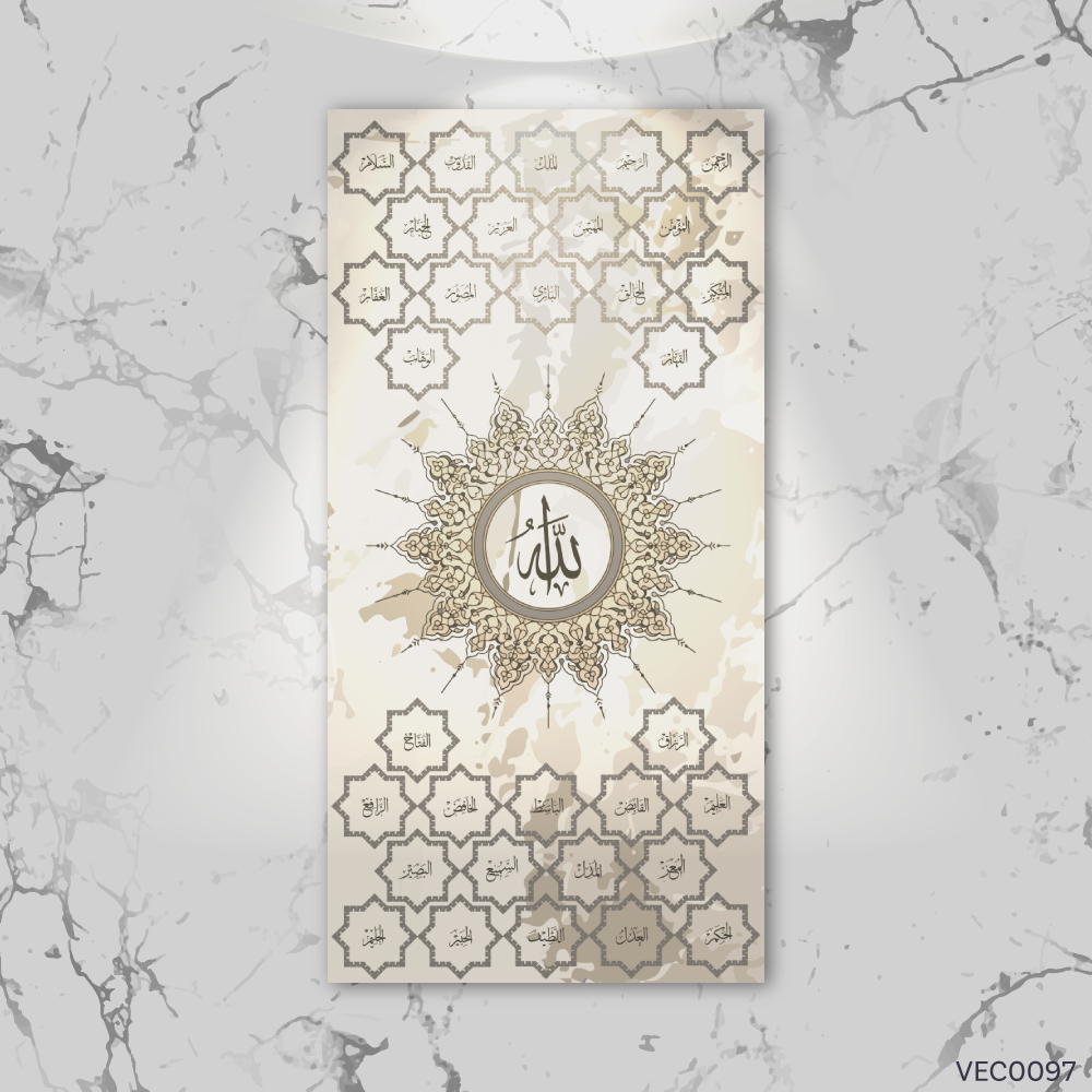 - تتميز اللوحة بتصميمها الفريد الذي يجمع بين الجمال الروحي والفن الراقي، حيث يتم عرض أسماء الله الحسنى بتفاصيل واضحة على خلفية كستنائي أنيق، مما يجعلها تناسب أي ديكور داخلي وتضيف لمسة من الفخامة والروحانية إلى المكان.