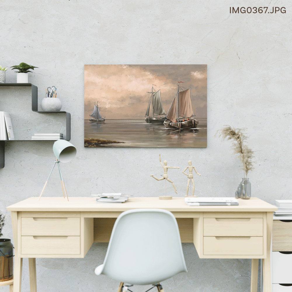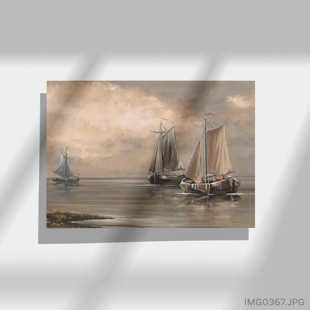 • تصوّر اللوحة السفن التي تبحر في المحيط تحت السماء الصافية، مما يعزز من الإيجابية والأمل في المكان، ويشجع على الاستمتاع باللحظة والعيش بتفاؤل.